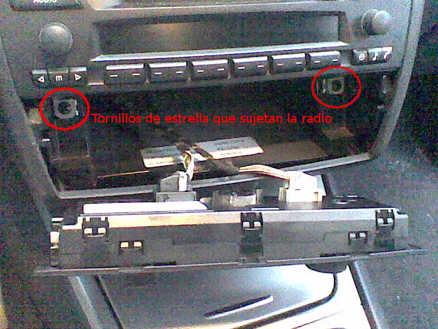 Para sacar la radio, hay que sacar primero el módulo del climatizador, que se saca a presión. Luego se desatornillan los 2 tornillos que sujetan la radio.
