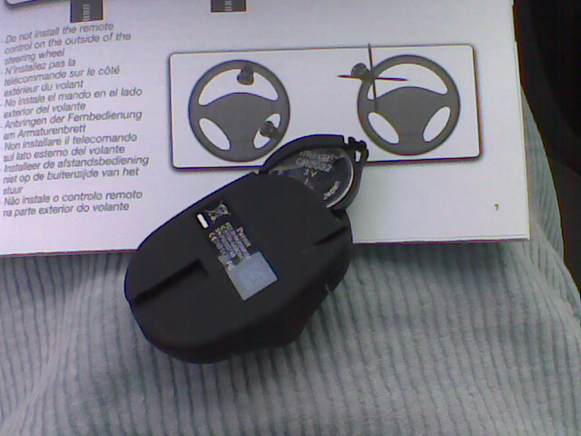 El mando pensé que no lo necesitaría, pero al final lo he pegado en ese hueco porque a veces necesito el botón de colgar. Puedo descolgar con el botón del volante, que es como si fuera el verde, pero no hace las funciones de colgar (como el rojo), y cuando no se cuelga sólo (por ejemplo cuando cuelga la otra persona llamando a un móvil) tengo que colgar con el botón rojo del Parrot, que se hace fácilmente sin mirar, porque es el que queda más a mano.