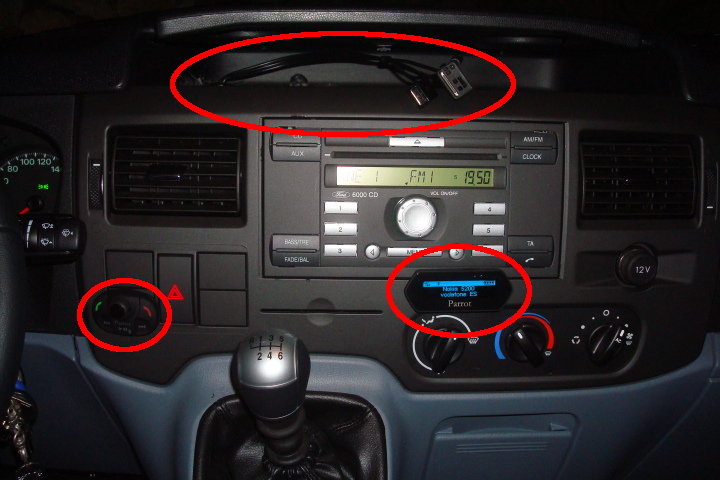 La primera instalación de Parrot la hago en la furgoneta de trabajo, mi padre consigue un manos libres a riesgo de usarla como conejillo de indias. Aun así fue la instalación más sencilla.